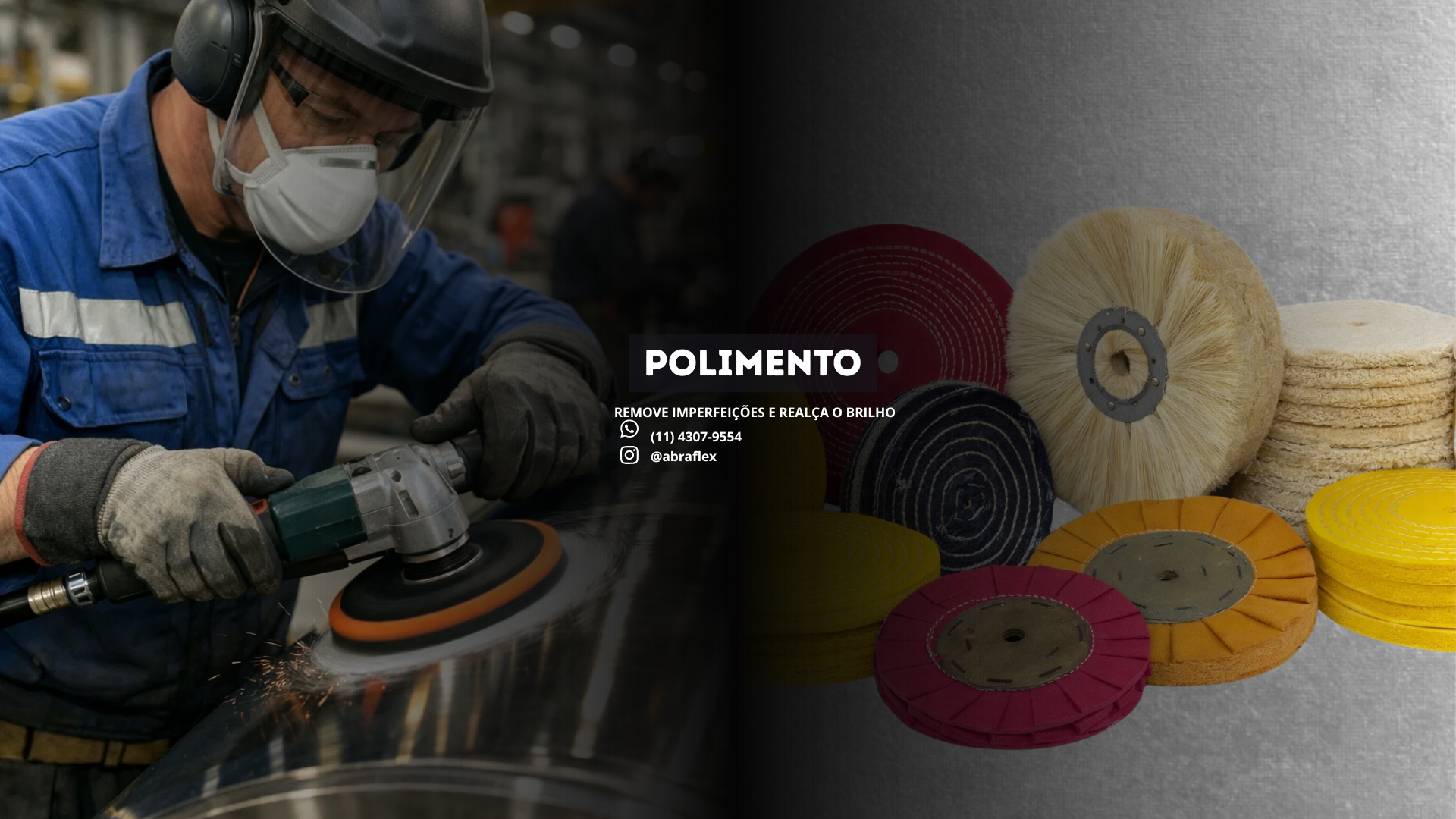Linha completa de abrasivos para todas as etapas do processo: corte, desbaste, acabamento e polimento.