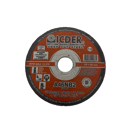 Disco De Corte - 4.1/2 X 7/8 - 2 Telas - Deep Cut - Icder - 114,3 x 1,0 x 22,2 mm
