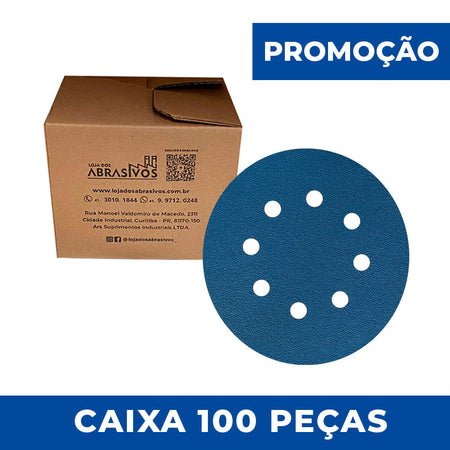 Disco Lixa Velcro 125mm - 5" - Filme - 8 Furos - Caixa 100 un.