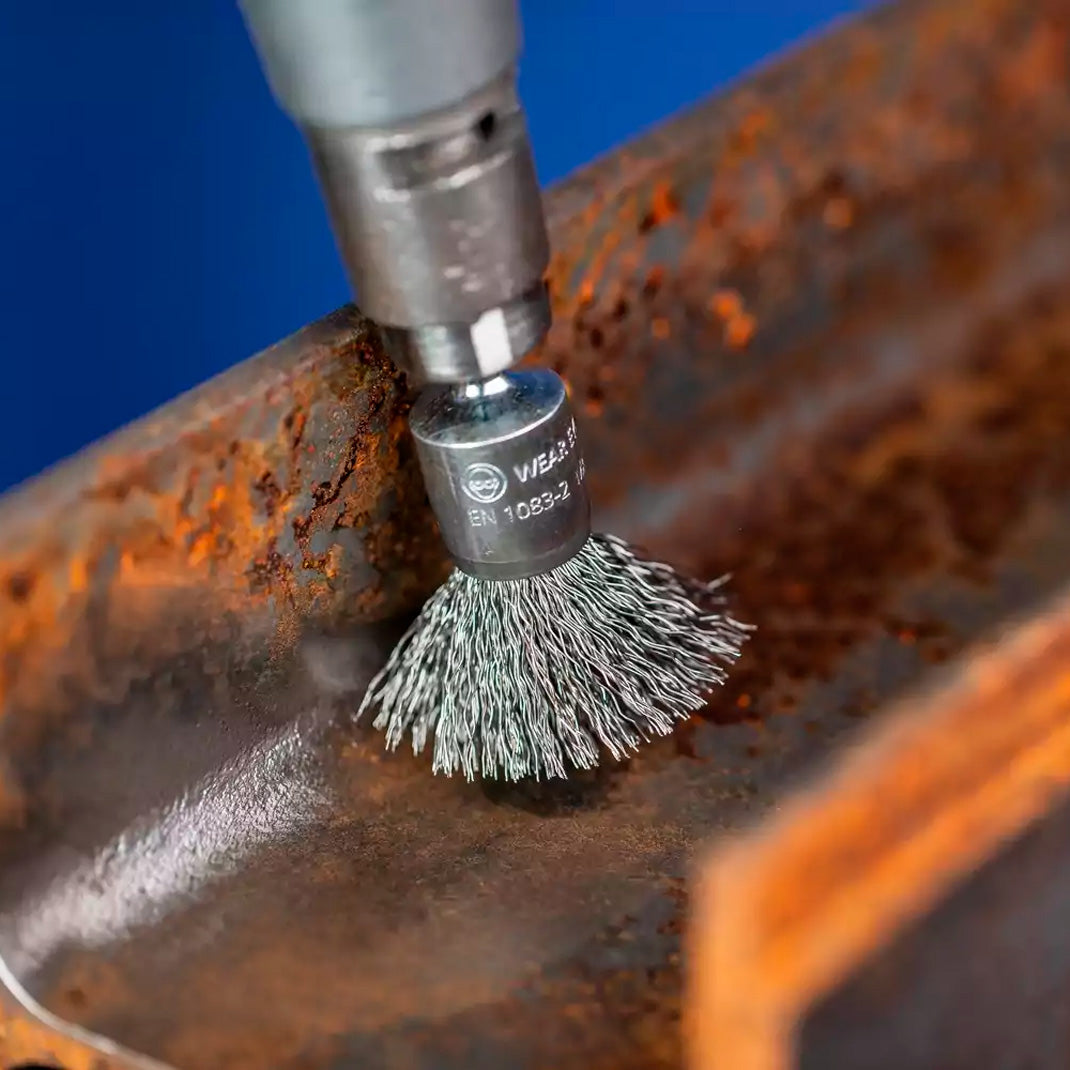 Adequada para a escovação leve, como rebarbamento, limpeza e remoção de oxidação.