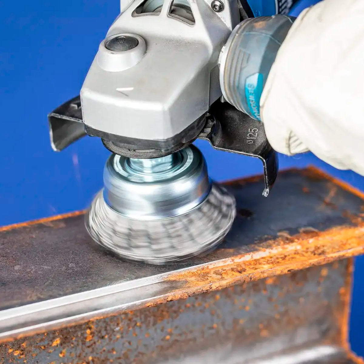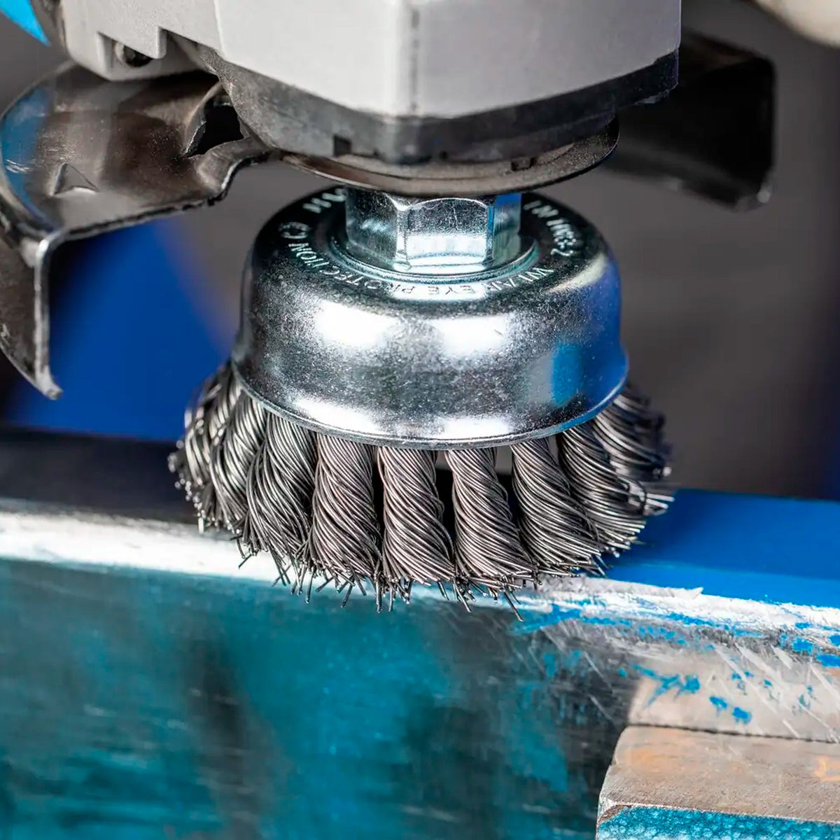 Escova agressiva. Excelente para escovação pesada como rebarbamento, limpeza, remoção de oxidação, desincrustação e remoção de respingos.