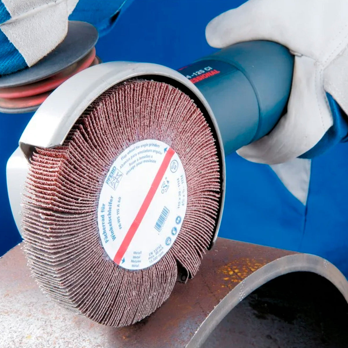 A ferramenta ideal para uso em esmerilhadeiras angulares em operações de montagem. Para aplicações gerais de desbaste grosso a fino.